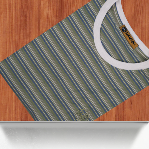 MAMATA PREMIUM Olive Striped T-Shirt (Olive/Gray/Blue)